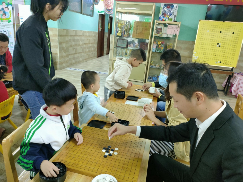 對弈前的坐姿端正,對弈中的聚精會神,這模樣足以表達孩子們對圍棋的熱愛。