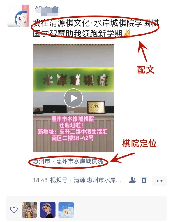 朋友圈轉(zhuǎn)發(fā)記得“棋院定位+以下配文”